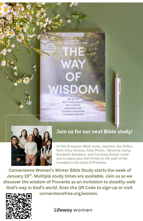 To minister to the needs of the women of Cornerstone by teaching the Word of God, providing opportunities for fellowship, and practical application of the Word by serving and loving one another.